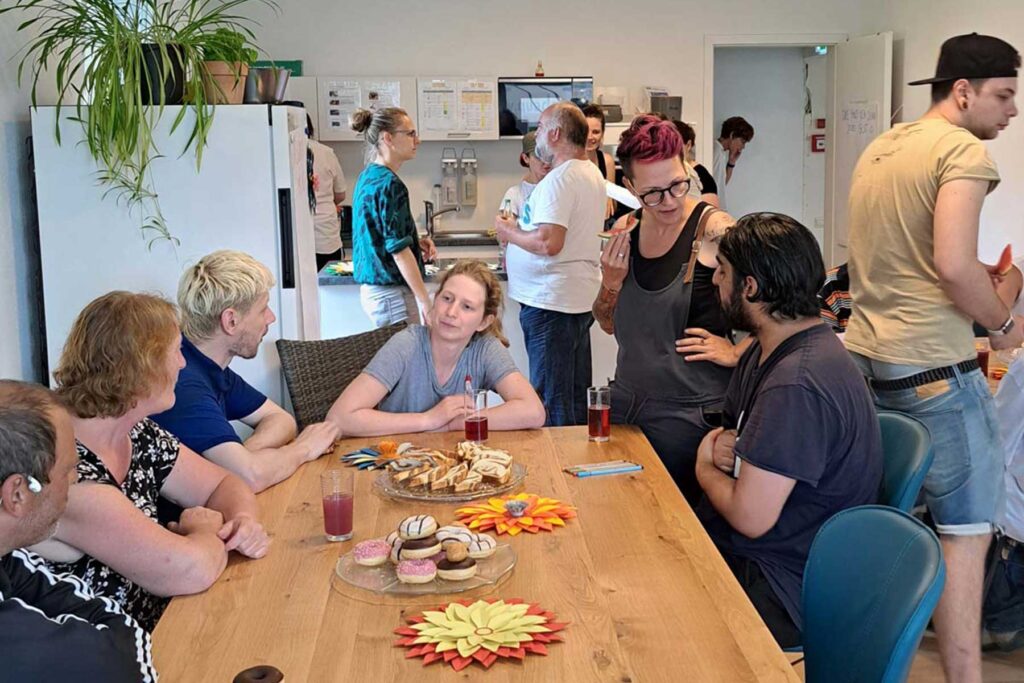 Nach umfangreichen Umbauarbeiten konnten im April 2025 die neuen Räumlichkeiten der Fördergruppe bezogen werden. Der Raum mit seiner angrenzenden Terrasse bietet viele Möglichkeiten der Beschäftigung: Arbeitsplätze für Auftragsarbeiten externer Firmen, für kreatives Schaffen oder auch für verschiedene kognitive Angebote, Zeitungsrunden und Bewegungsangebote.